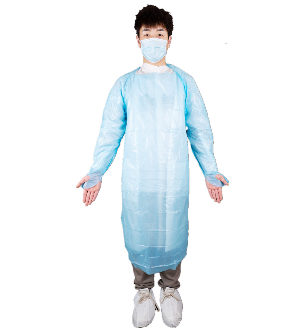 Jednorazowa szata medyczna z tworzyw sztucznych z pętlą kciuka