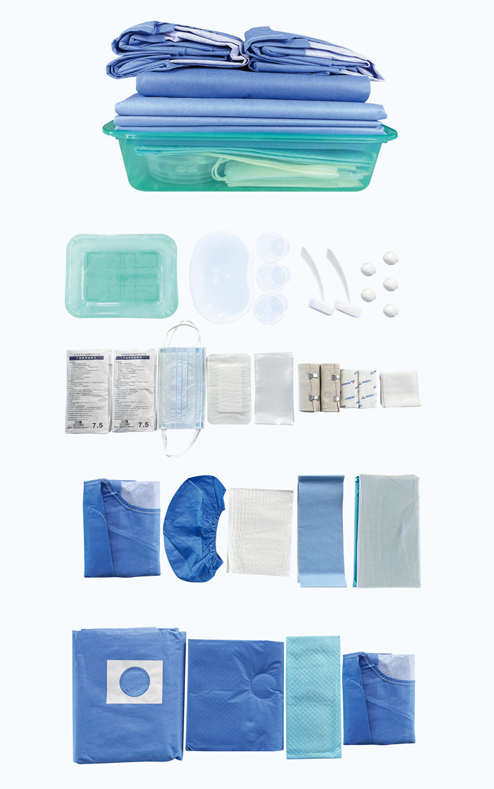 Każde jednorazowe sterylne uniwersalne opakowanie zawiera wzmocnioną szatę chirurgiczną, pokrywę stołową, lepki drapet, opakowanie itp.